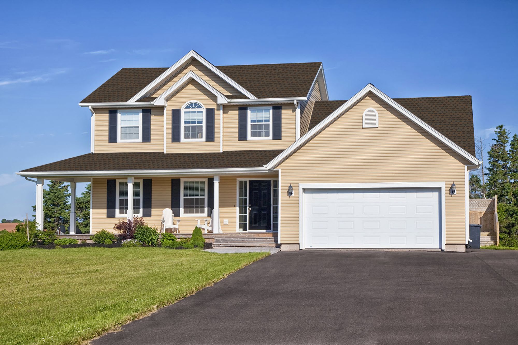 Brownstone works beautifully with tan, beige, and cream exteriors, as well as red brick facades. It brings warmth to the overall appearance while maintaining a refined, classic aesthetic.
